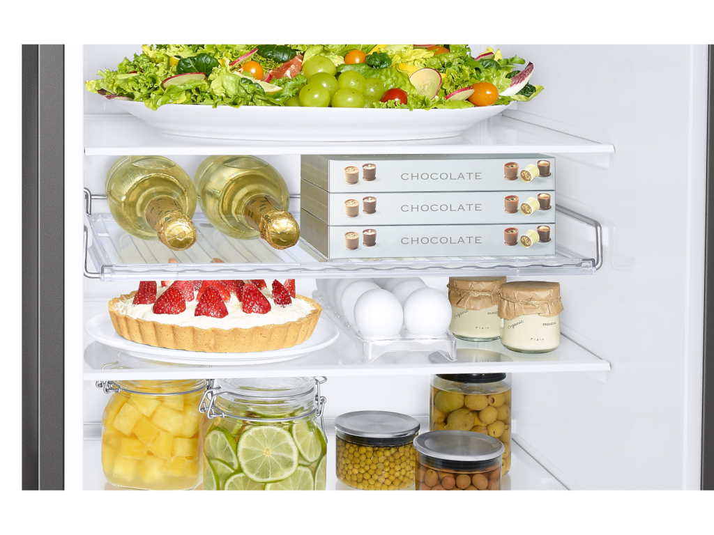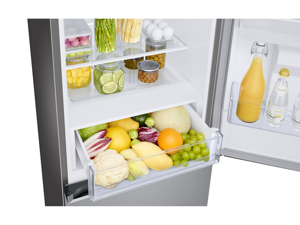 Samsung kombinovani frižider RB34C652ESA visine 185 cm nudi ukupnu zapreminu od 341 l i praktično rješenje za svakodnevno čuvanje namirnica. Zahvaljujući No Frost tehnologiji, održavanje je jednostavnije, bez ručnog odmrzavanja.