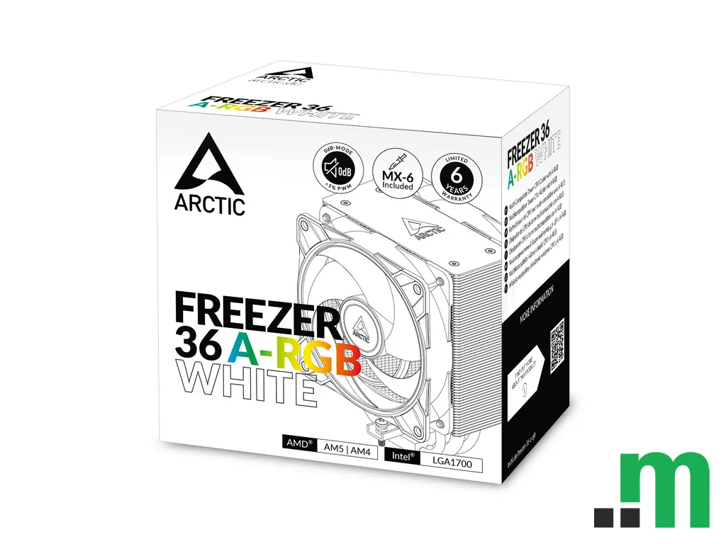 Arctic Freezer 36 A-RGB White je CPU hladnjak u bijeloj izvedbi, namijenjen za moderne Intel i AMD platforme. Idealan je za korisnike koji žele pouzdano hlađenje uz A-RGB osvjetljenje koje se uklapa u estetski uređene konfiguracije.