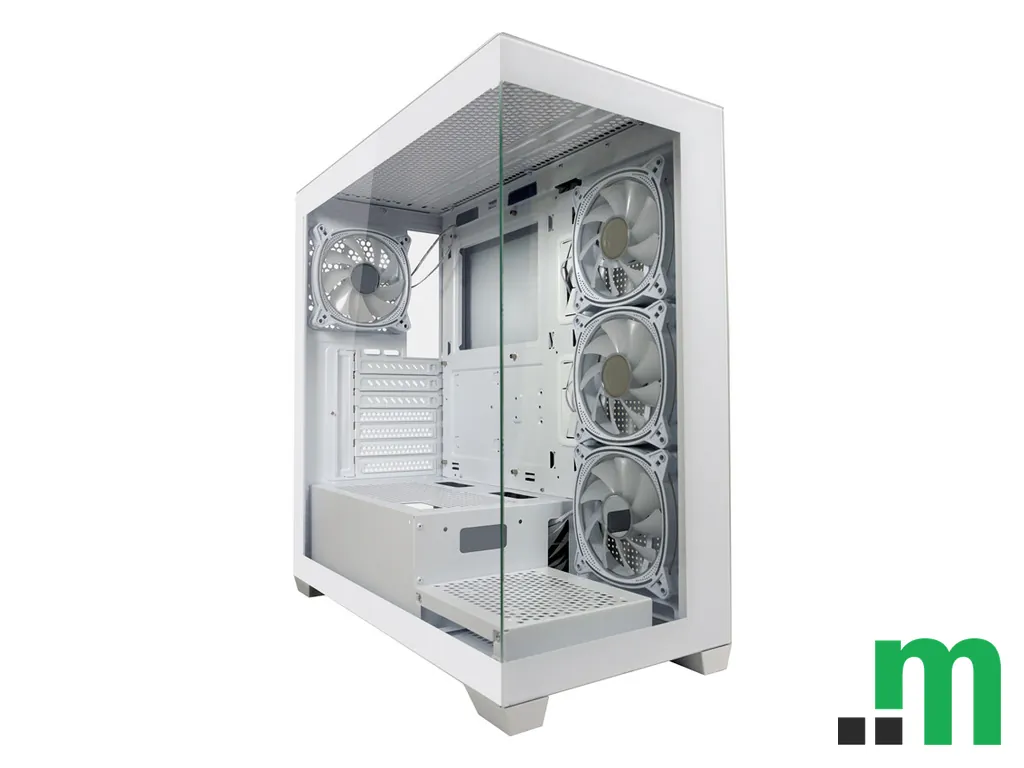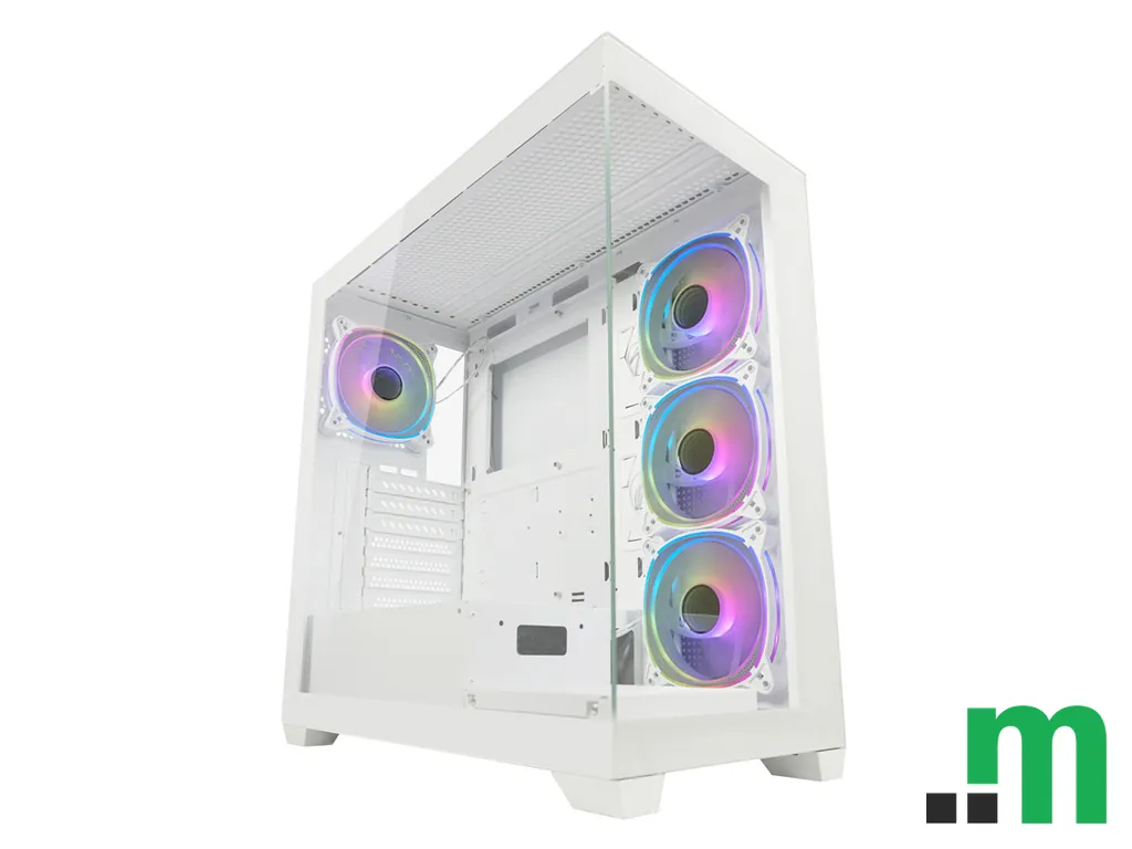 LC-Power Gaming kućište 715W u bijeloj boji donosi midi-tower format za ATX konfiguracije, uz modernu prednju I/O povezivost i ARGB osvjetljenje. Praktično je rješenje za sastavljanje gaming ili radnog računara, s fokusom na uredan izgled i jednostavan pristup priključcima.