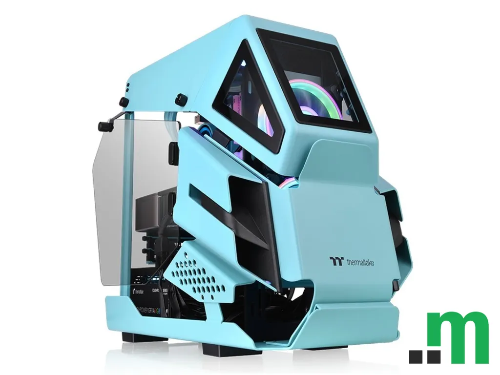 Thermaltake AH T200 je mATX kućište u tirkiznoj boji, dizajnirano za atraktivan izgled i preglednost komponenti. Dolazi sa dva panela od kaljenog stakla (TG) koji ističu unutrašnjost konfiguracije.