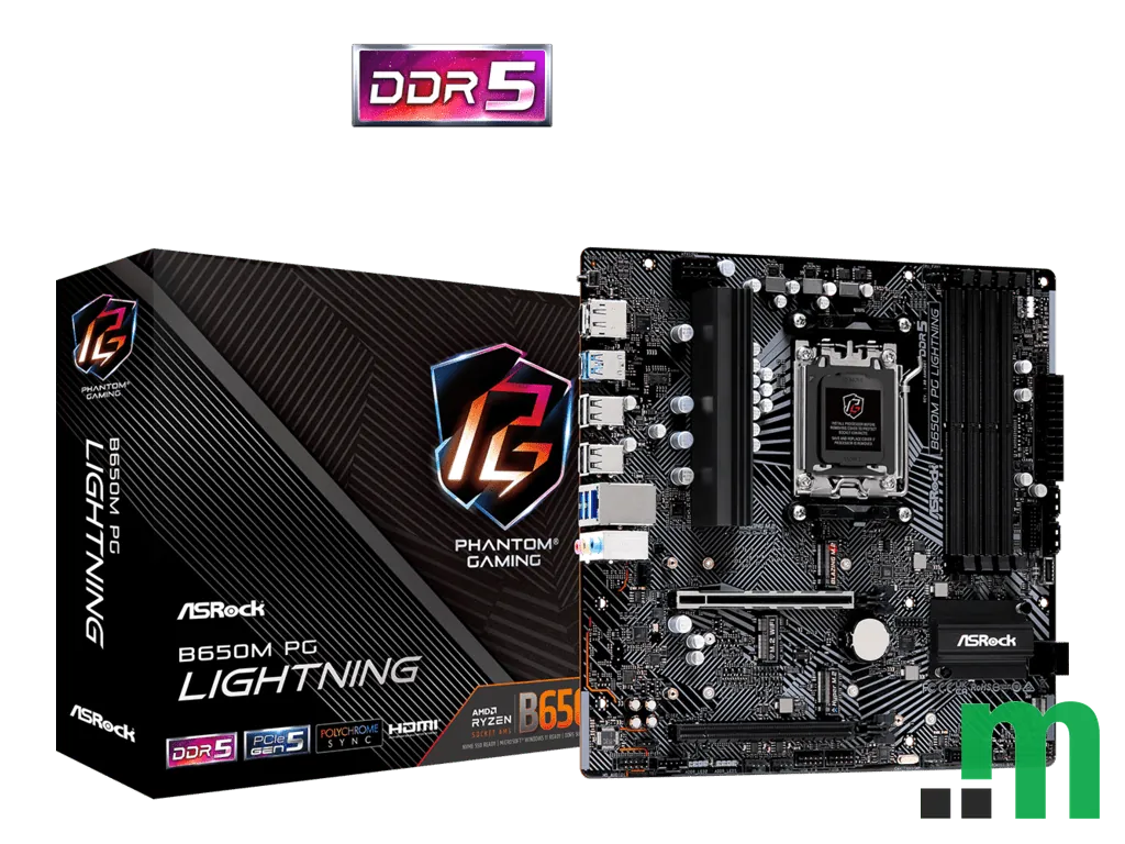 ASRock B650M PG Lightning je micro-ATX matična ploča sa AMD B650 čipsetom i AM5 socketom, namijenjena za moderne AMD procesore i DDR5 memoriju. Praktičan izbor za kompaktne konfiguracije, uz podršku za više diskova i osnovne video izlaze.