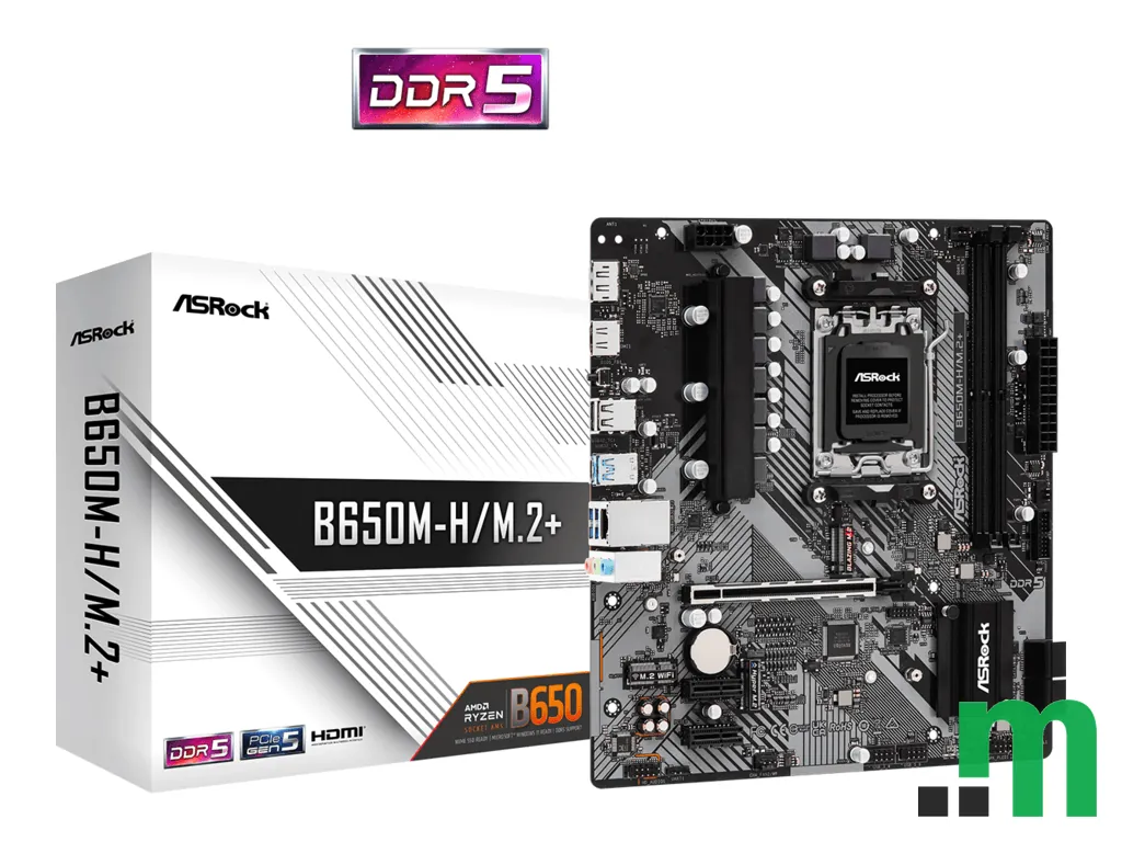 ASRock B650M-H/M.2+ je micro-ATX matična ploča sa AMD B650 čipsetom i AM5 socketom, namijenjena AMD procesorima i DDR5 memoriji. Praktičan je izbor za kompaktne konfiguracije uz podršku za moderne priključke i fleksibilne opcije za pohranu.