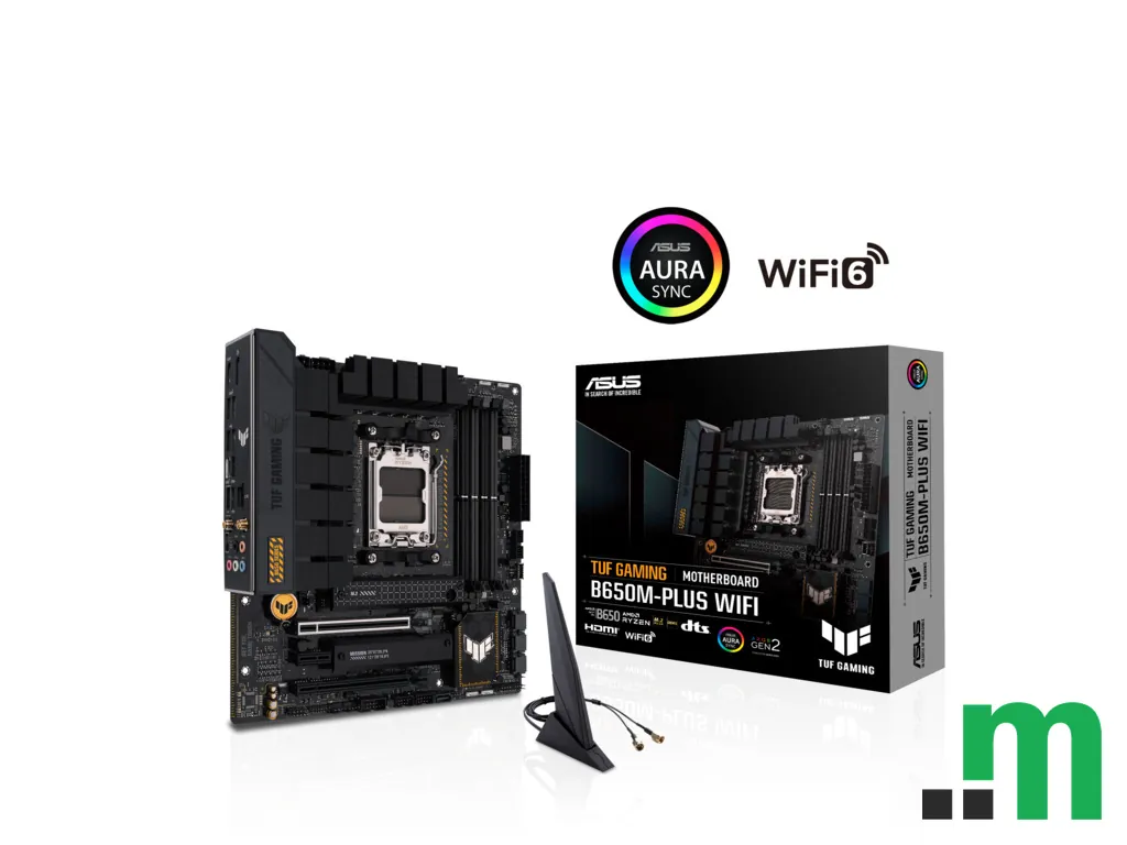 ASUS TUF GAMING B650M-PLUS WIFI je micro-ATX matična ploča za AMD AM5 platformu, namijenjena modernim konfiguracijama sa DDR5 memorijom. Bazirana na AMD B650 čipsetu, donosi praktične opcije povezivanja i video izlaze za kompatibilne procesore.