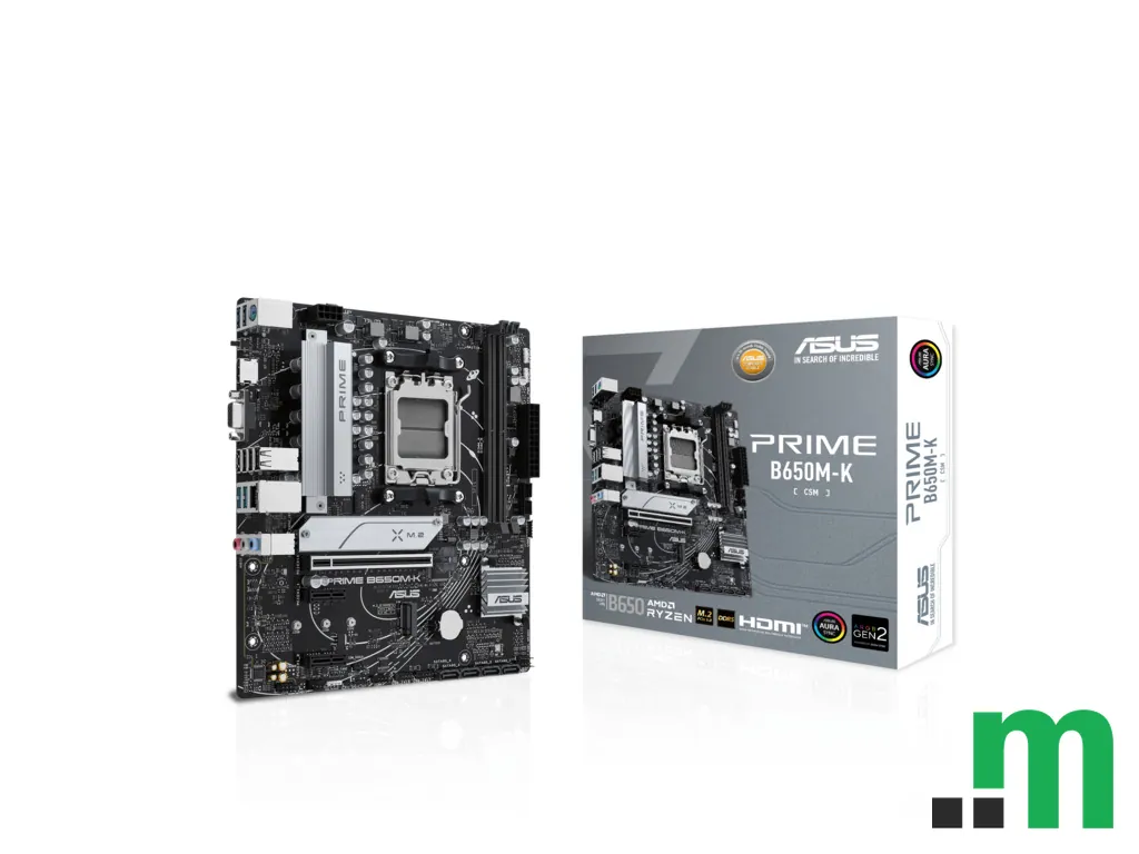 ASUS PRIME B650M-K je micro-ATX matična ploča za AMD AM5 platformu, namijenjena stabilnoj osnovi za savremene konfiguracije. Sa AMD B650 čipsetom i podrškom za DDR5 memoriju, pogodna je za balans između performansi i kompaktnog formata kućišta.