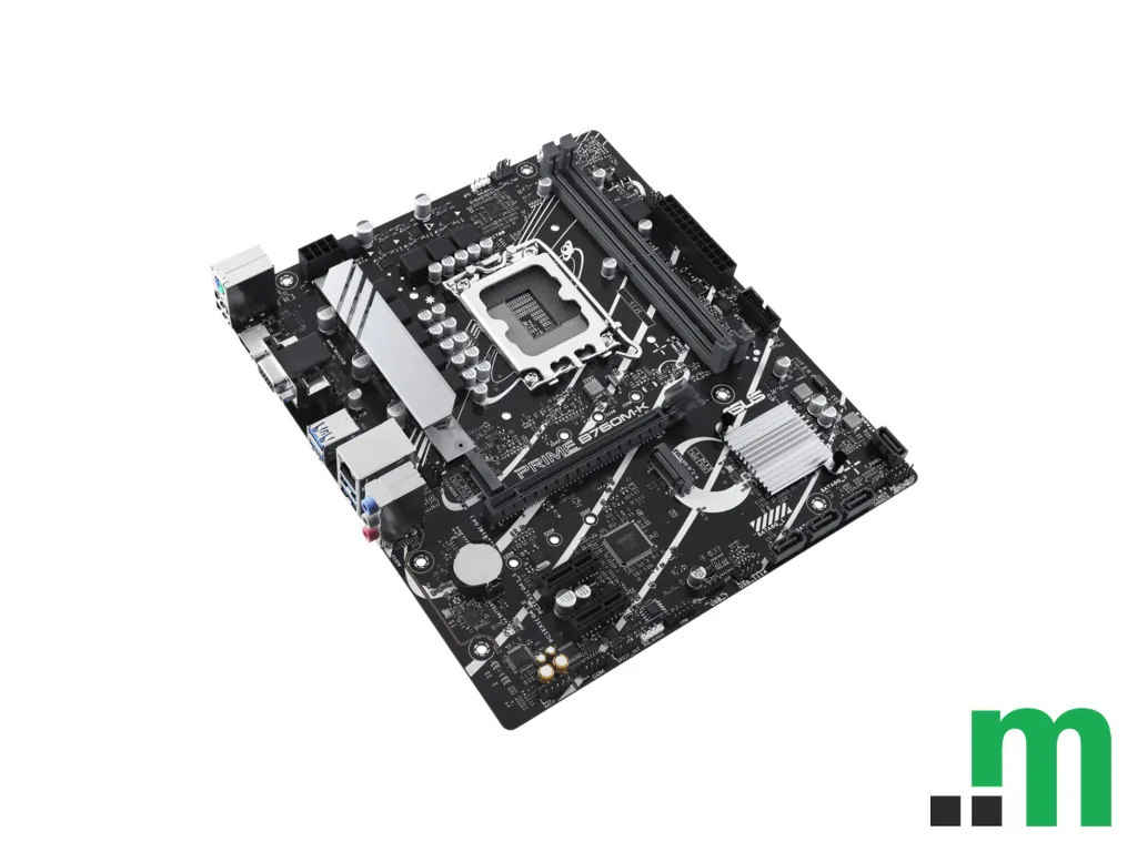ASUS PRIME B760M-K je micro-ATX matična ploča sa Intel B760 čipsetom i LGA1700 socketom, namijenjena za Intel procesore. Podržava DDR5 memoriju i nudi praktične opcije povezivanja za svakodnevne i poslovne konfiguracije.