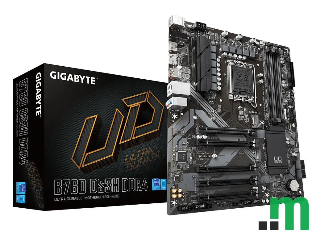 Gigabyte B760 DS3H DDR4 je ATX matična ploča za Intel procesore sa LGA1700 socketom, namijenjena stabilnoj osnovi za modernu desktop konfiguraciju. Podržava DDR4 memoriju i nudi dobar izbor priključaka za skladištenje i periferije.