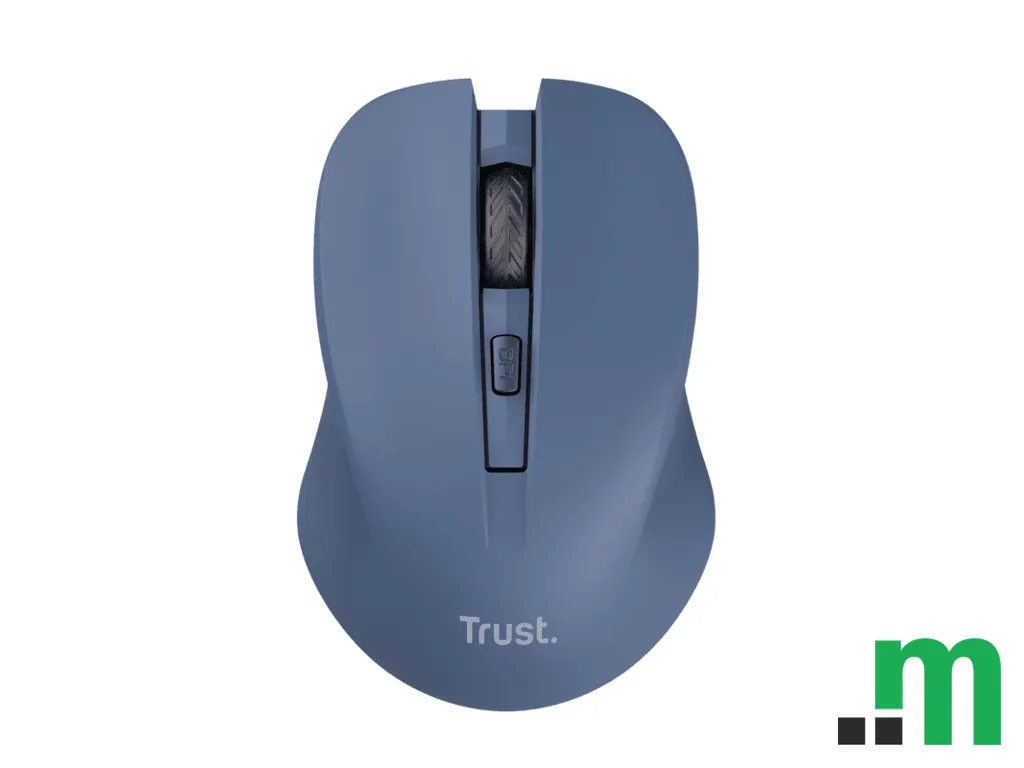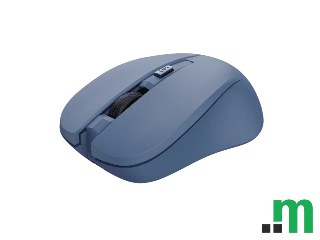 Trust Mydo Silent bežični miš u plavoj boji dizajniran je za tiši rad i svakodnevnu upotrebu kod kuće ili u kancelariji. Simetričan oblik omogućava udobno korištenje i lijevom i desnom rukom.