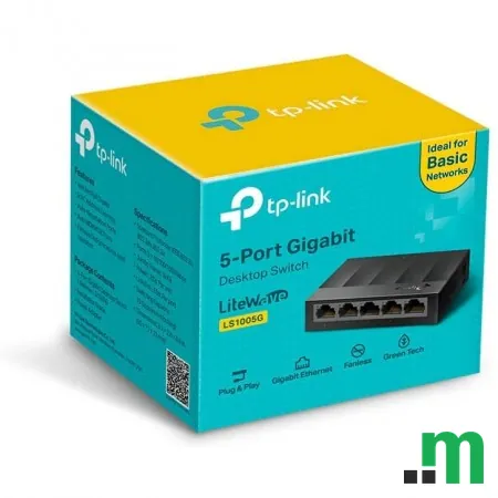 TP-Link LS1005G je kompaktni mrežni switch sa 5 Gigabit Ethernet portova, namijenjen za jednostavno proširenje kućne ili kancelarijske mreže. Pogodan je za povezivanje računara, smart TV-a, NAS uređaja, printera i drugih mrežnih uređaja.