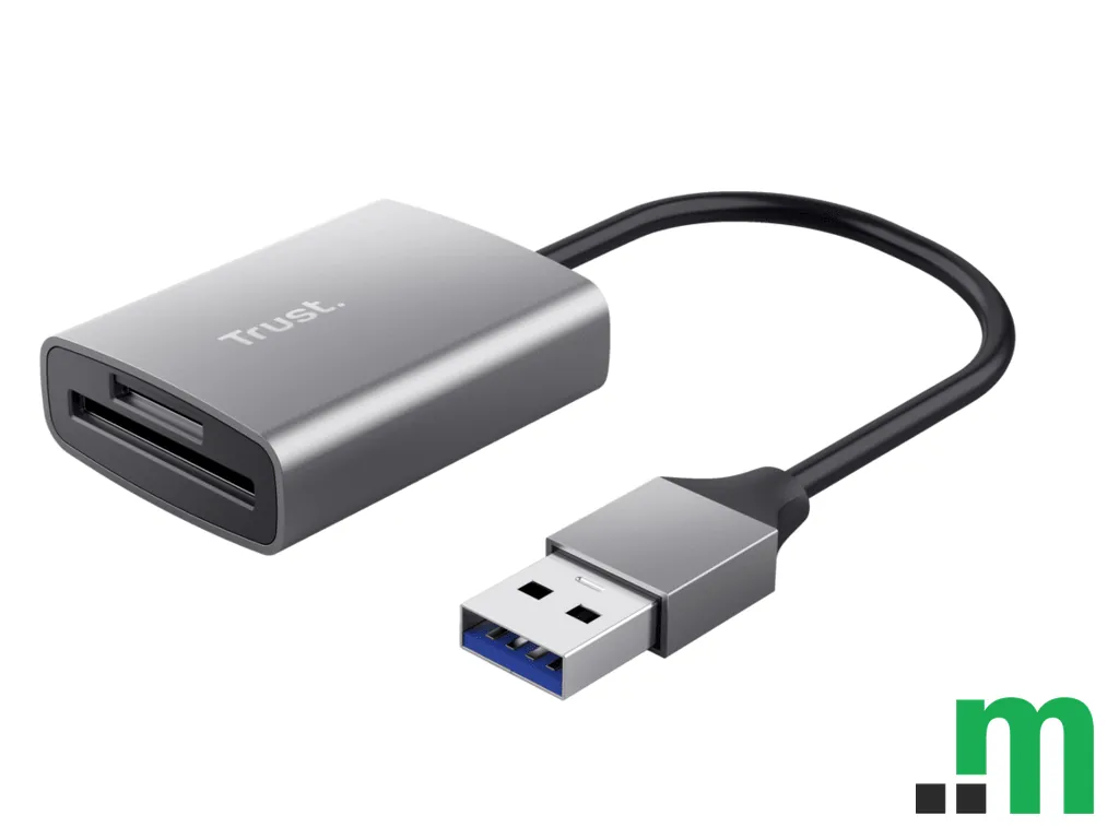 Trust Dalyx Fast Cardreader USB 3.2 je praktičan čitač SD kartica sa USB-A priključkom, namijenjen brzom i jednostavnom prijenosu podataka između kartice i računara. Idealan je za svakodnevni rad s fotografijama, dokumentima i drugim datotekama.
