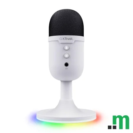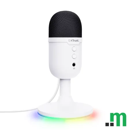 Trust GXT 234 Yunix je USB gaming mikrofon u bijeloj boji, namijenjen za jednostavno postavljanje na radni sto uz priloženi desk stand. Povezuje se putem USB-A, a podržava i 3.5 mm priključak, što ga čini praktičnim izborom za gaming, chat i svakodnevnu upotrebu.