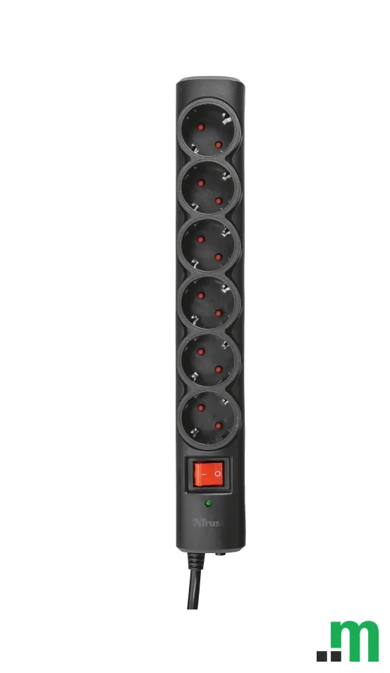 Trust produžni kabl sa 6 utičnica i prenaponskom zaštitom praktično je rješenje za napajanje više uređaja na jednom mjestu, uz dodatnu sigurnost od prenapona.