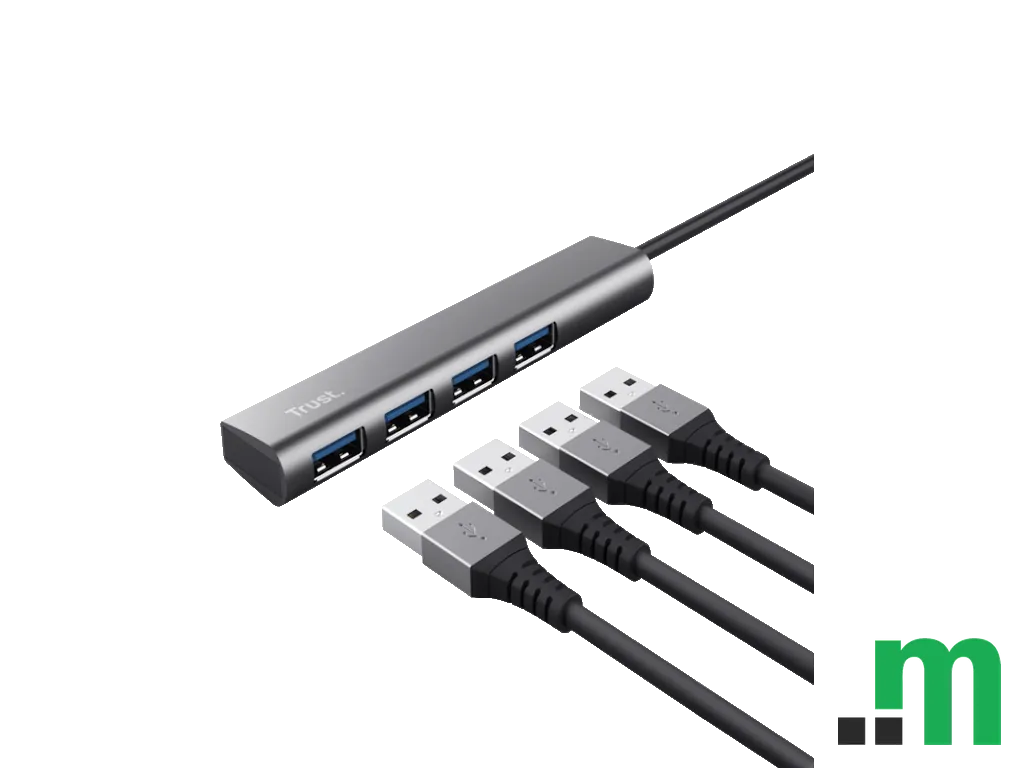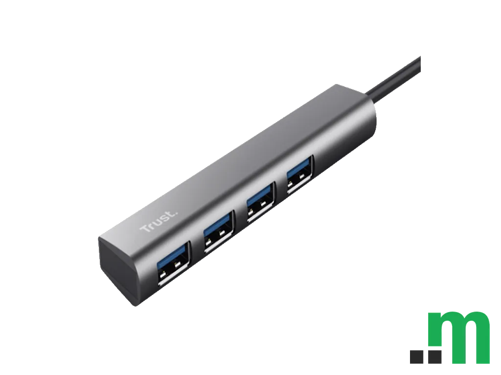 Trust Halyx USB-C to 4-port USB-A 3.2 Gen1 Hub je praktičan adapter koji proširuje jedan USB‑C priključak na četiri USB‑A porta, idealno za povezivanje više perifernih uređaja na laptop ili računar.